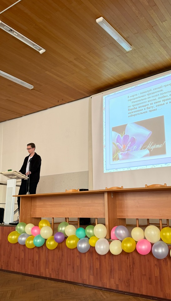 Совет молодых ученых выступил организатором праздничного мероприятия в институте, посвященного Международному женскому дню. Открыла вечер директор института, поздравившая всех женщин института с наступающим праздником. Члены СМУ подготовили для гостей разнообразную программу: · С просветительским докладом выступил Запевалов А.Т., который рассказал об истории праздника 8 Марта в мире и в России. В исполнении участников СМУ прозвучали поздравительные стихи. Кульминацией вечера стала премьера поздравительного видеоролика, подготовленного силами СМУ. После официальной части всех гостей ждало дружеское чаепитие, где продолжилось общение в уютной атмосфере. Праздник получился душевным и познавательным, объединив разные поколения научных сотрудников.